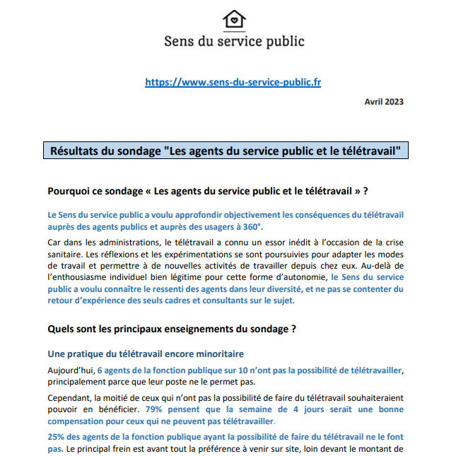 Pour le Sens du service public, « l'essor du télétravail doit garantir les fonctionnements de proximité des services publics »